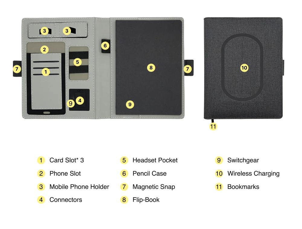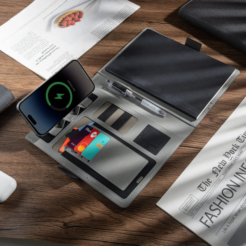 Co-Leather Padfolio with Wireless Charging Notebook, Tablet Holder with Pen – Business Organizer Folder with Notepad