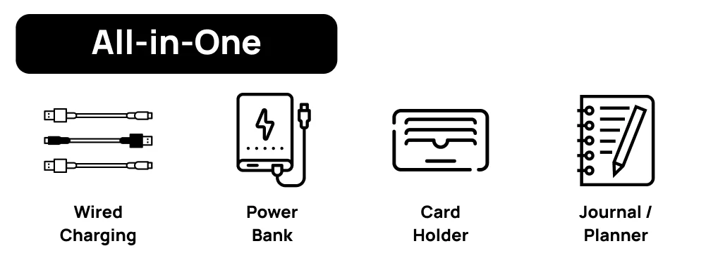 🔋 All-in-One Charging & Storage Built-in power bank, 3-in-1 charging cable (Type-C/Lightning/Micro USB), and USB flash drive — power and files always at your fingertips.