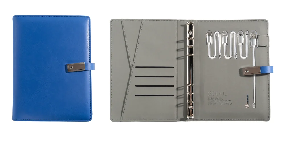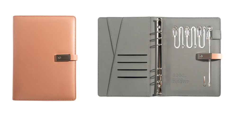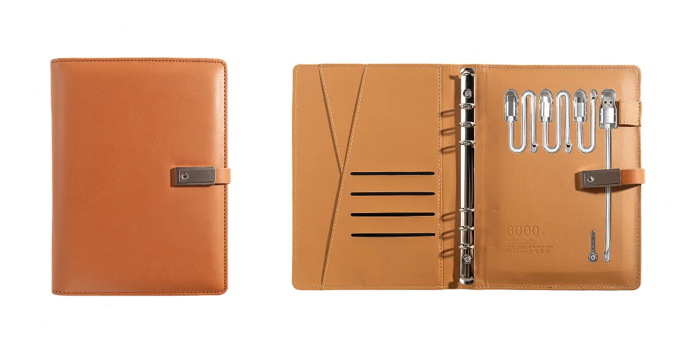 Leather Notebook with Built-in Power Bank, USB Drive, 3-in-1 Charging Cable, and A5 Planner Perfect for Business, Travel, Gift