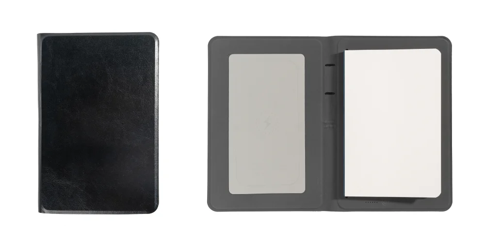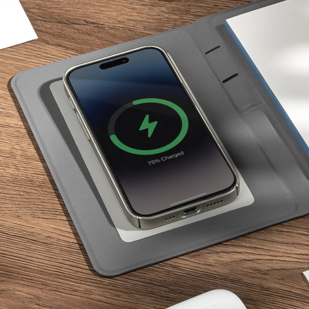Ultra Slim Wireless Charging Notebook with Hidden Phone Stand, B5 Portable Planner for Work and Travel
